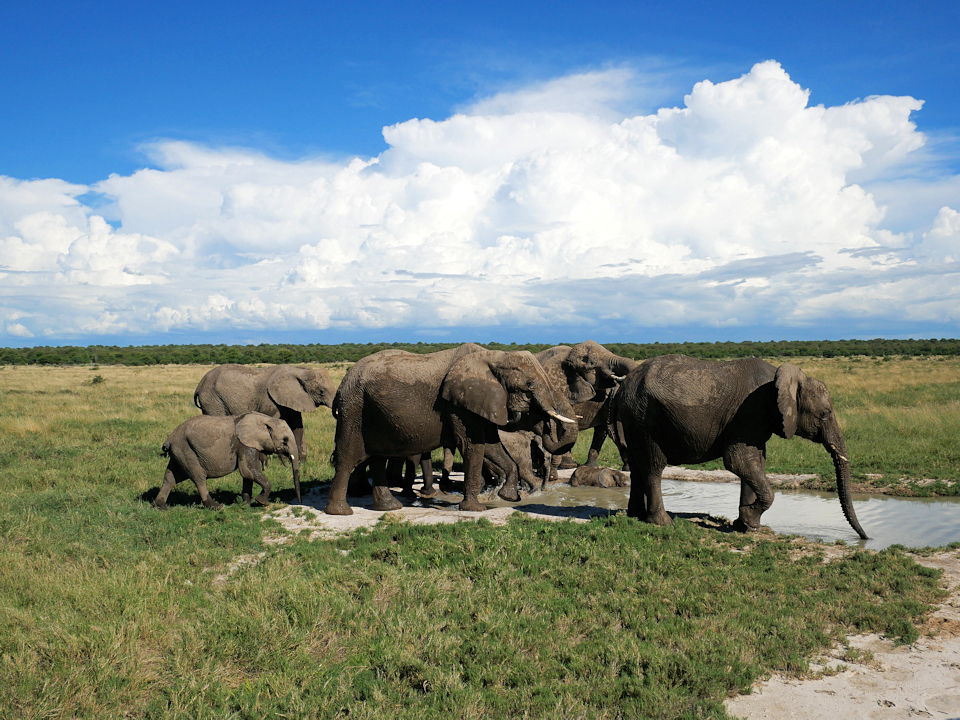 De laatste dagen brachten we door in Etosha National Park. Tijdens onze game drives zagen we zebra’s, giraffen, antilopen en verschillende leeuwen. Op een bepaald moment stonden we oog in oog met een leeuw die net had gegeten en rustig onze richting uit wandelde om te drinken van een plas. Spannend! We spotten ook hyena’s, jakhalzen, een zwarte neushoorn en een grote kudde olifanten met schattige kleintjes die zich verfristen aan een waterbron. Na een safaridag van maar liefst twaalf uur genoten we van een heerlijk kerstdiner. Moe maar voldaan kropen we vroeg onder de wol.